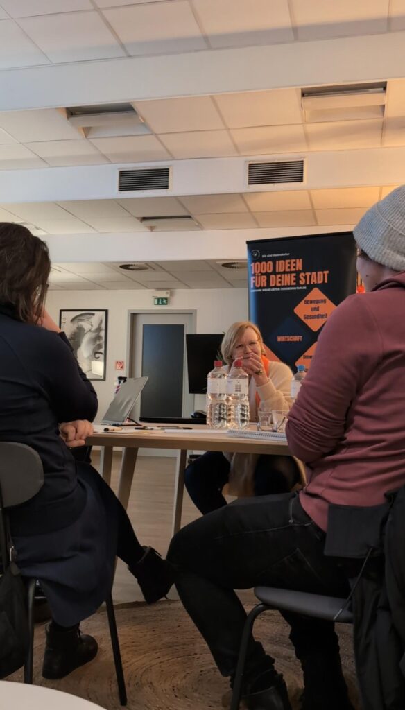 Der Ablauf war bewusst kompakt und dialogorientiert gestaltet. Alle drei Standorte waren online zusammengeschaltet. Nach einem kurzen Intro folgten drei persönliche Gründer*innen-Geschichten, jeweils etwa zehn Minuten lang. Anschließend hatten die Teilnehmenden in einer 30-minütigen Q&A-Session die Möglichkeit, Fragen zu stellen, sich einzubringen und direkt mit den Speakerinnen in den Austausch zu gehen.